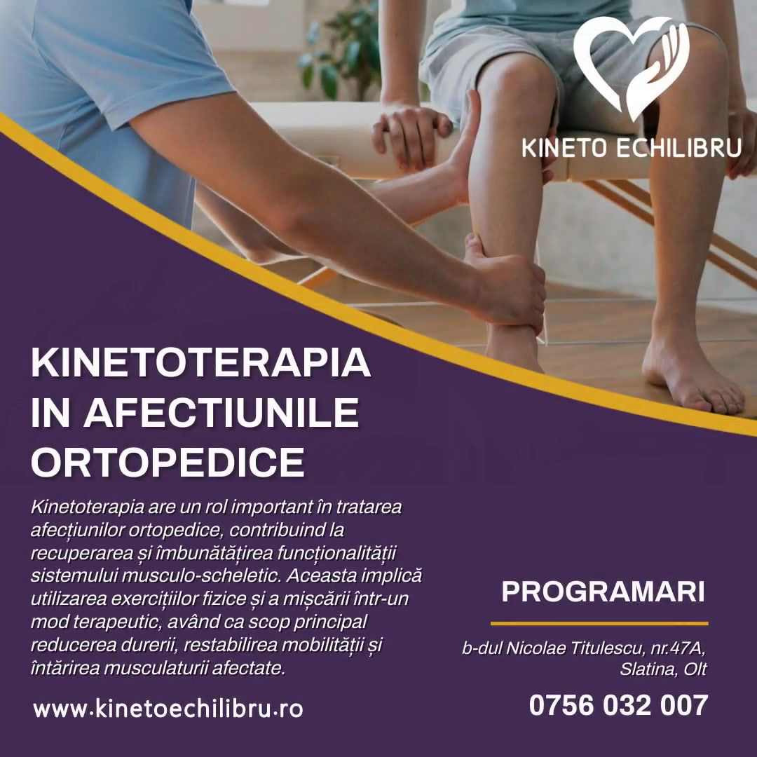 Kinetoterapia în afectiunile ortopedice este o formă de terapie fizică și exercițiu adaptată pentru tratarea și recuperarea afecțiunilor sistemului musculo-scheletic. Această ramură a kinetoterapiei are ca scop principal restabilirea funcției și mobilității articulare, reducerea durerii și îmbunătățirea calității vieții pacienților cu afecțiuni ortopedice.